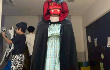 今日は、お化け屋敷を作りました👻まず、手形を取っていきます。筆で手に赤色の絵の具を塗ると、冷たさやくすぐったさでみんな笑っていました。「こうしたらもっと怖くなりそう」と子ども達で考え、文字を書き始める子も!お化けの絵を描…