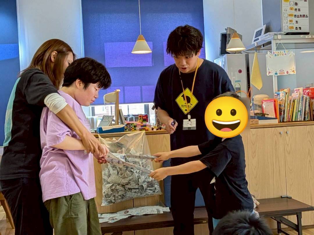 今日のイベントは新聞相撲大会をしました!