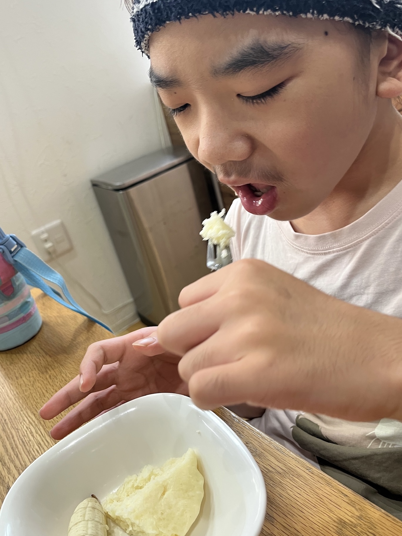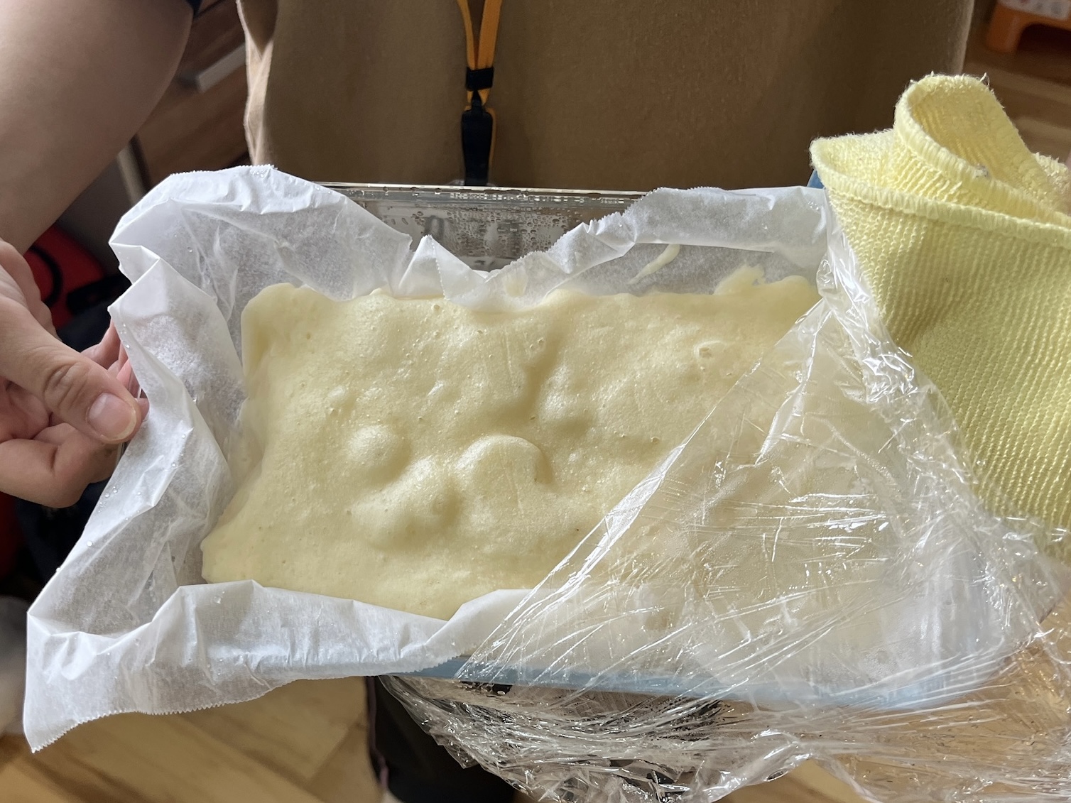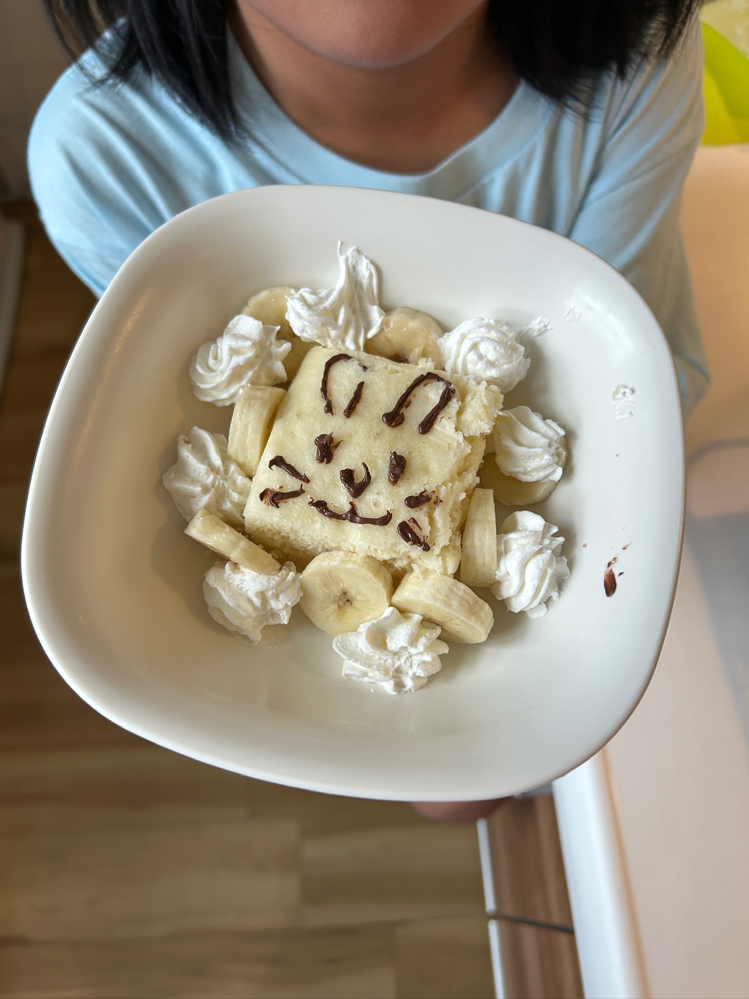 レンジで蒸しパンができるの?と少し不思議そうな様子でしたが、加熱が終わるとフワフワの蒸しパンが出来上がりました✨✨