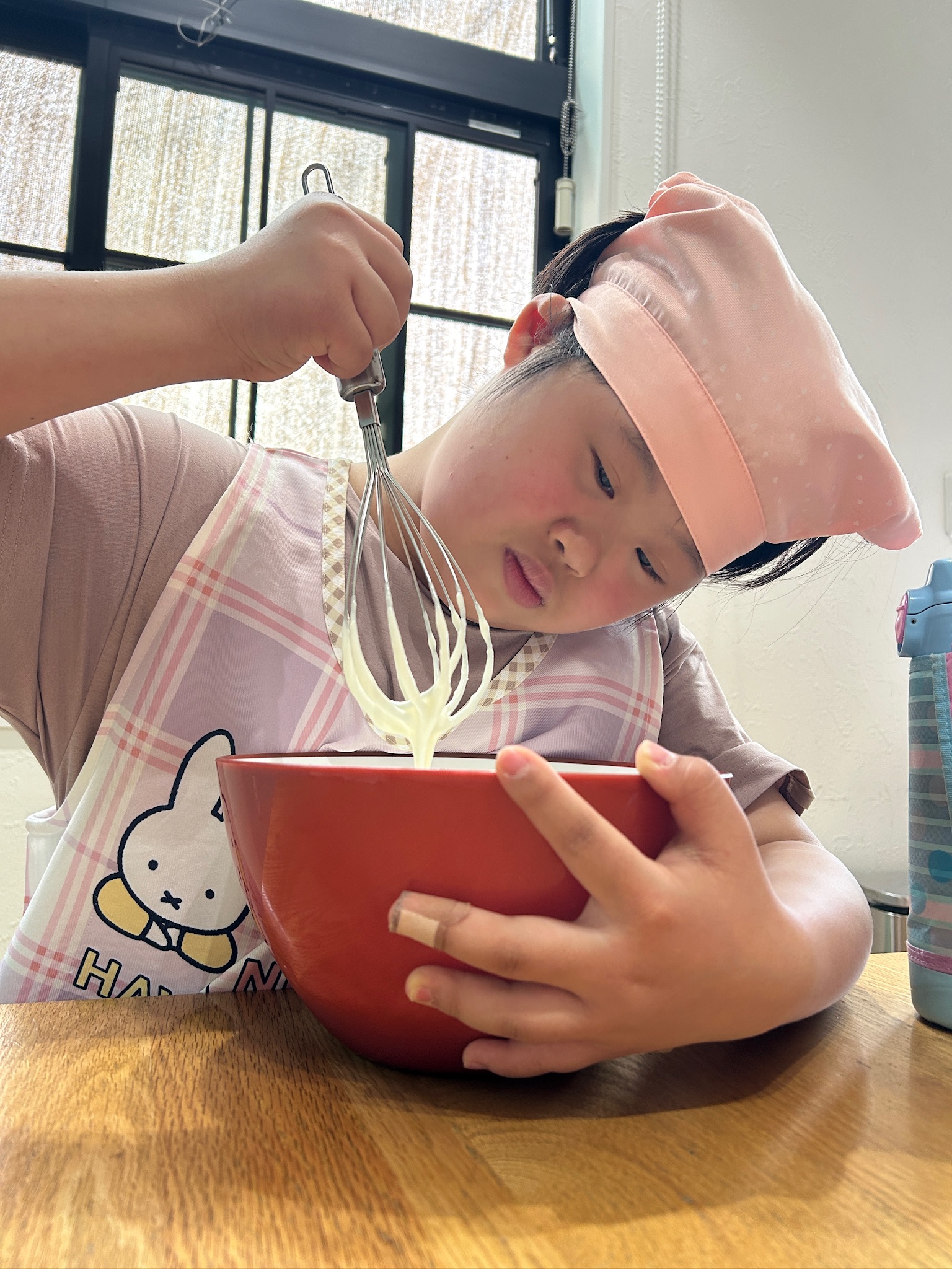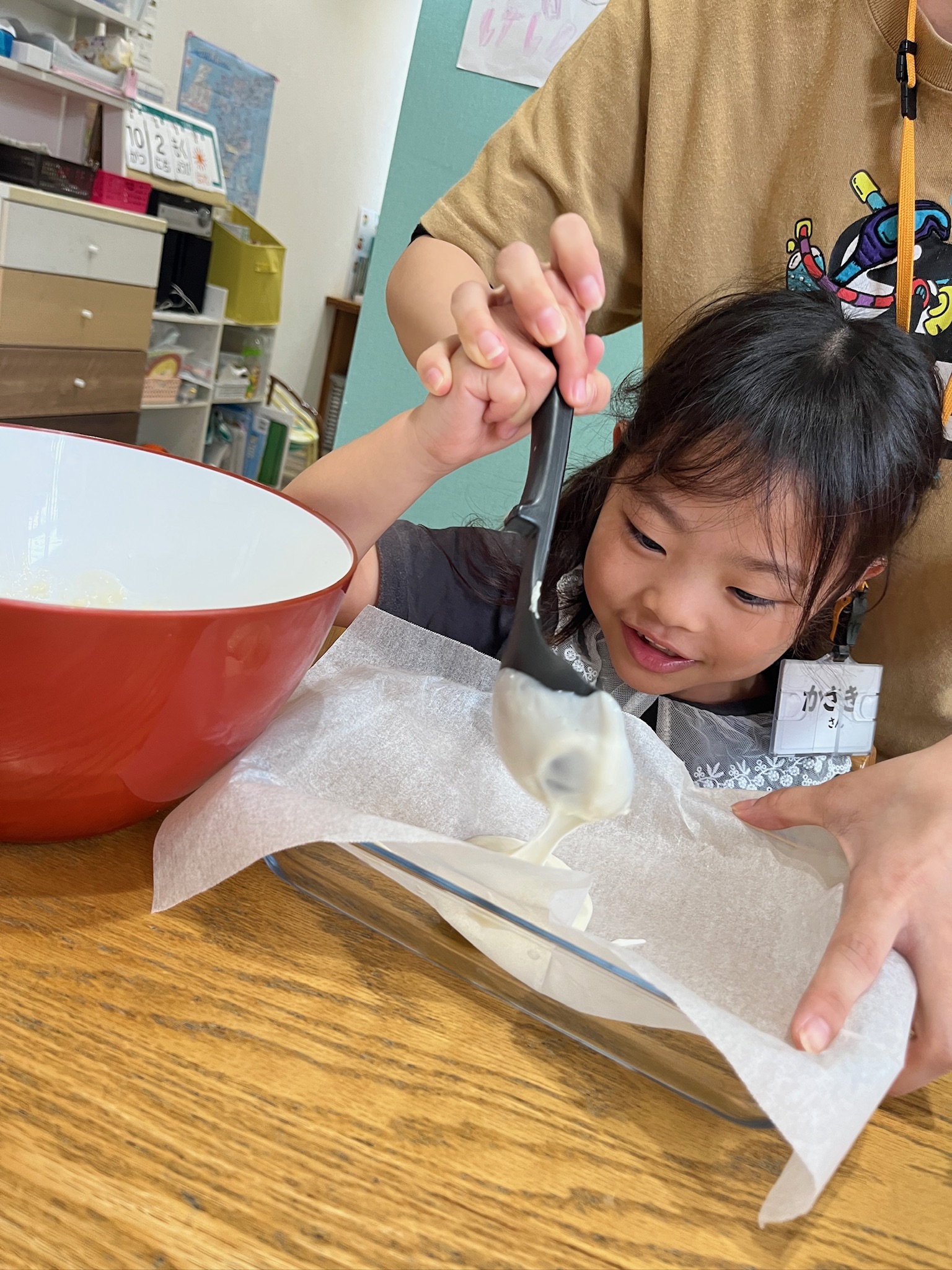 今日は、お月見の季節にちなんで、うさぎの蒸しパンを作りました!蒸しパンを食べたことがないお友達もいるみたいで、どんなおやつなのかワクワクしている様子でした😄さて!エプロンに着替え、さっそくクッキングへ⭐️