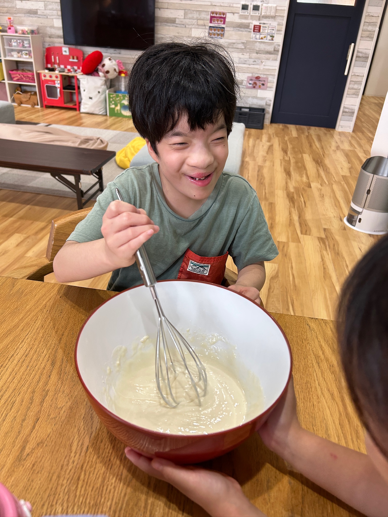 材料が入ったら混ぜよう!「美味しくな〜れ!」みんなで混ぜると楽しいね♪