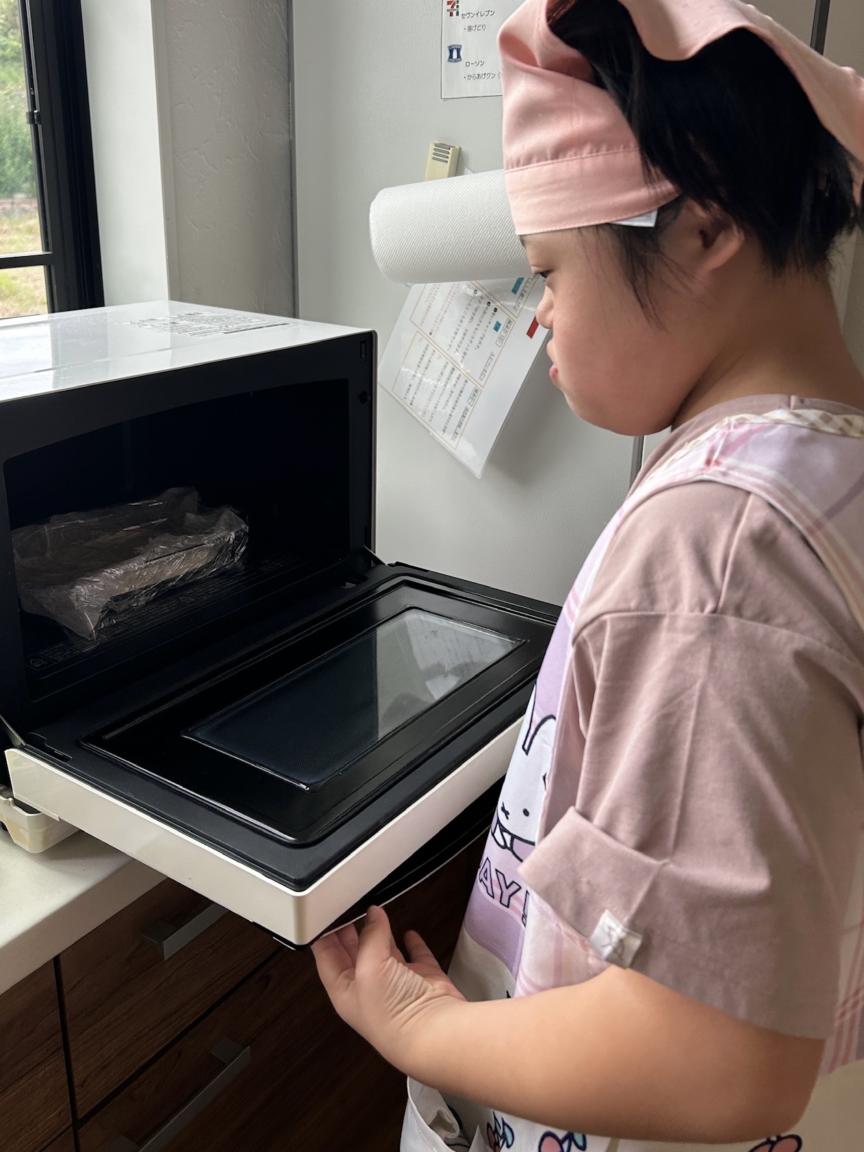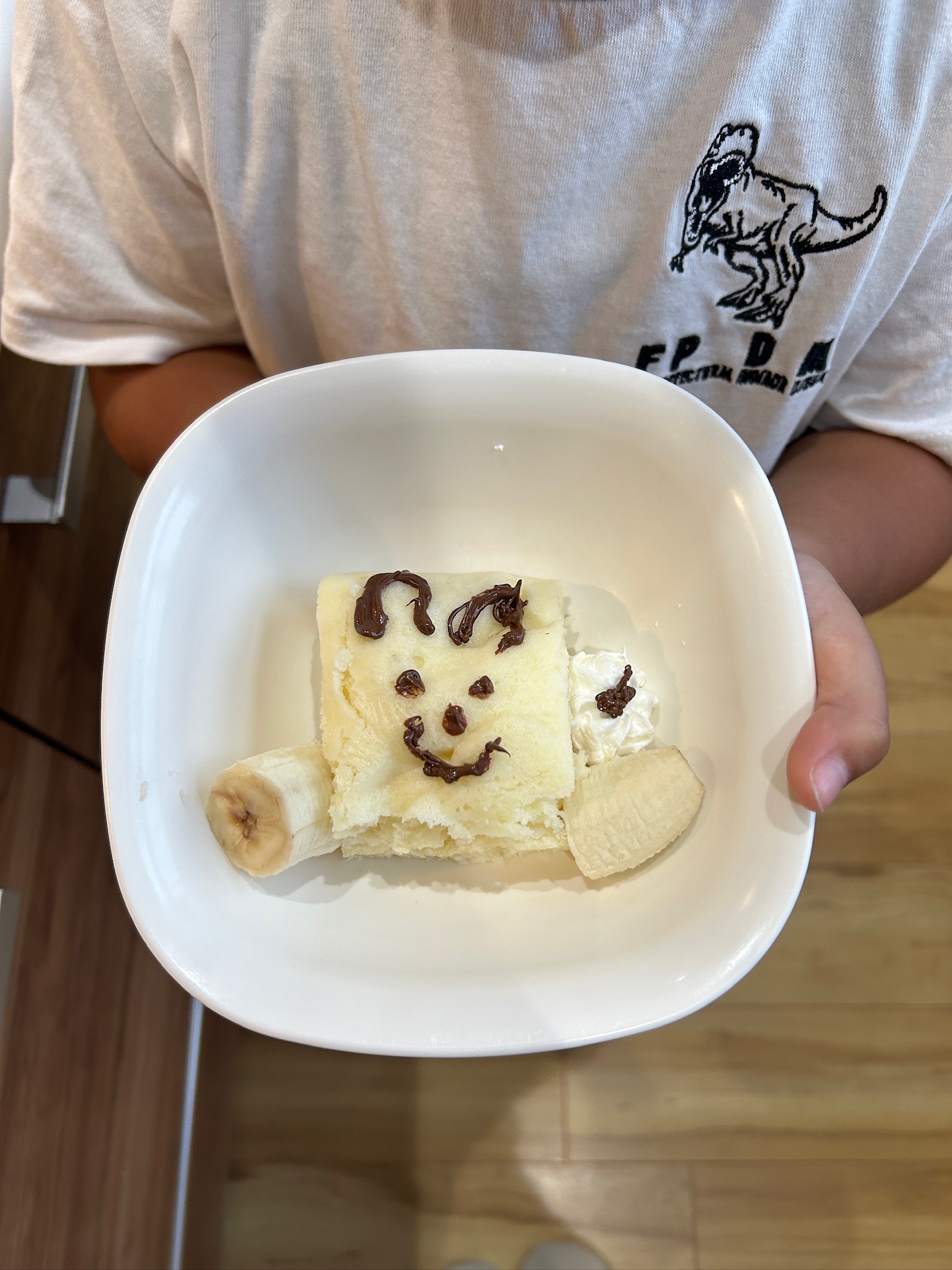 レンジで蒸しパンができるの?と少し不思議そうな様子でしたが、加熱が終わるとフワフワの蒸しパンが出来上がりました✨✨