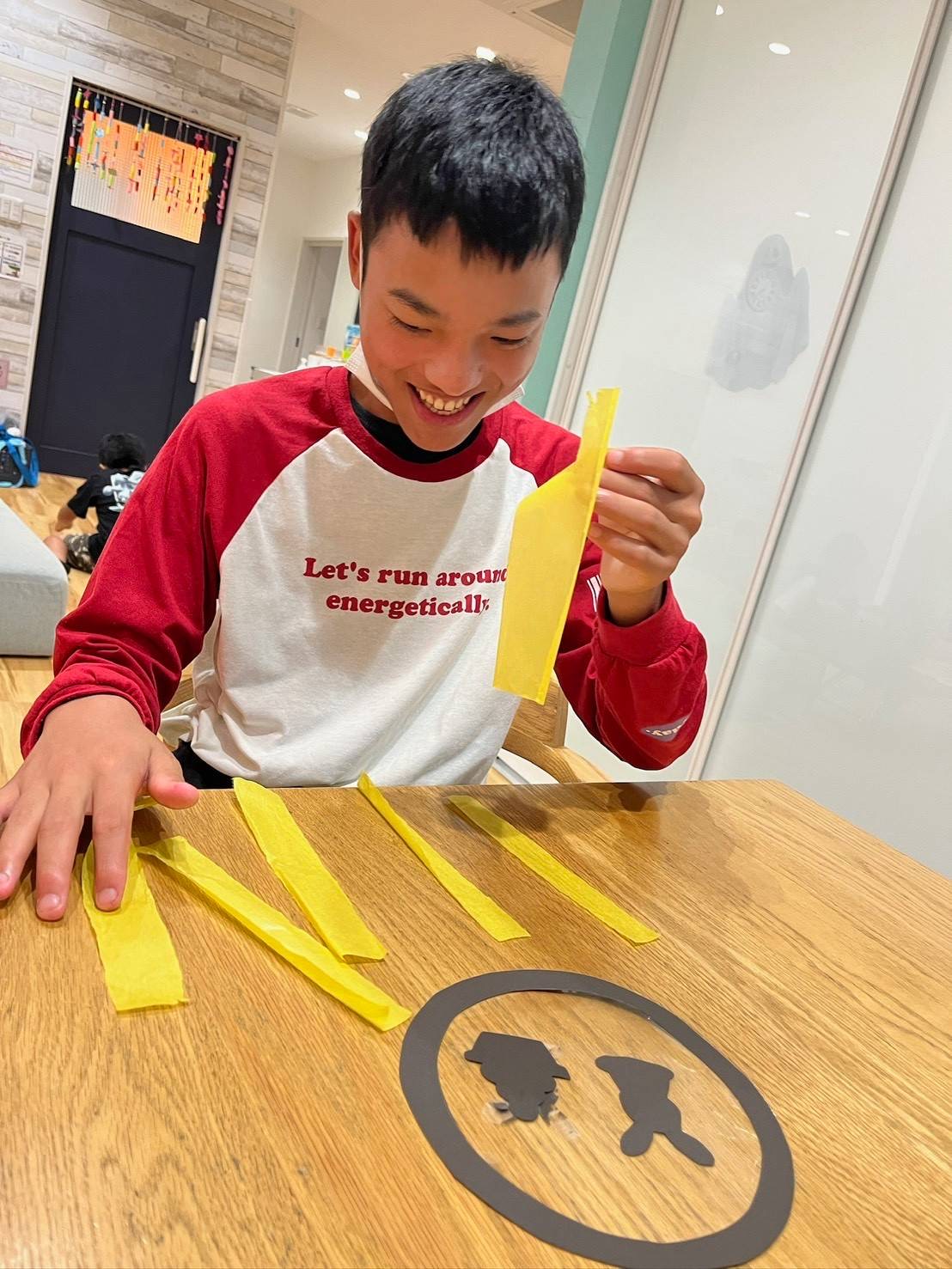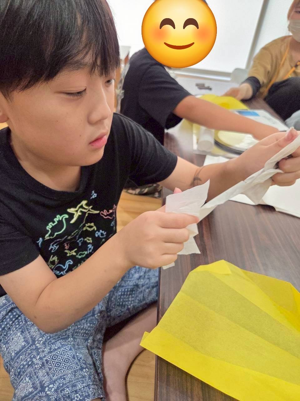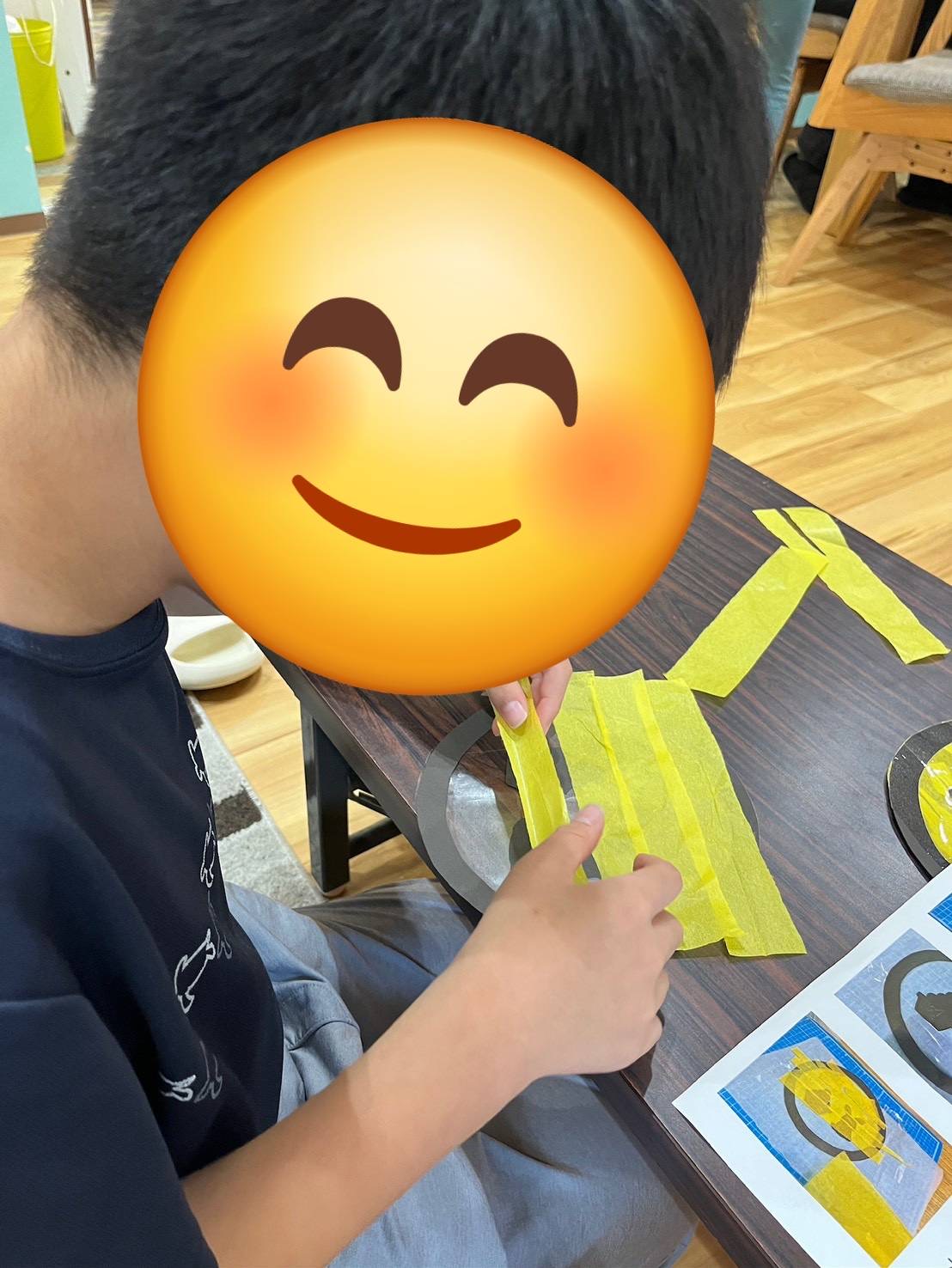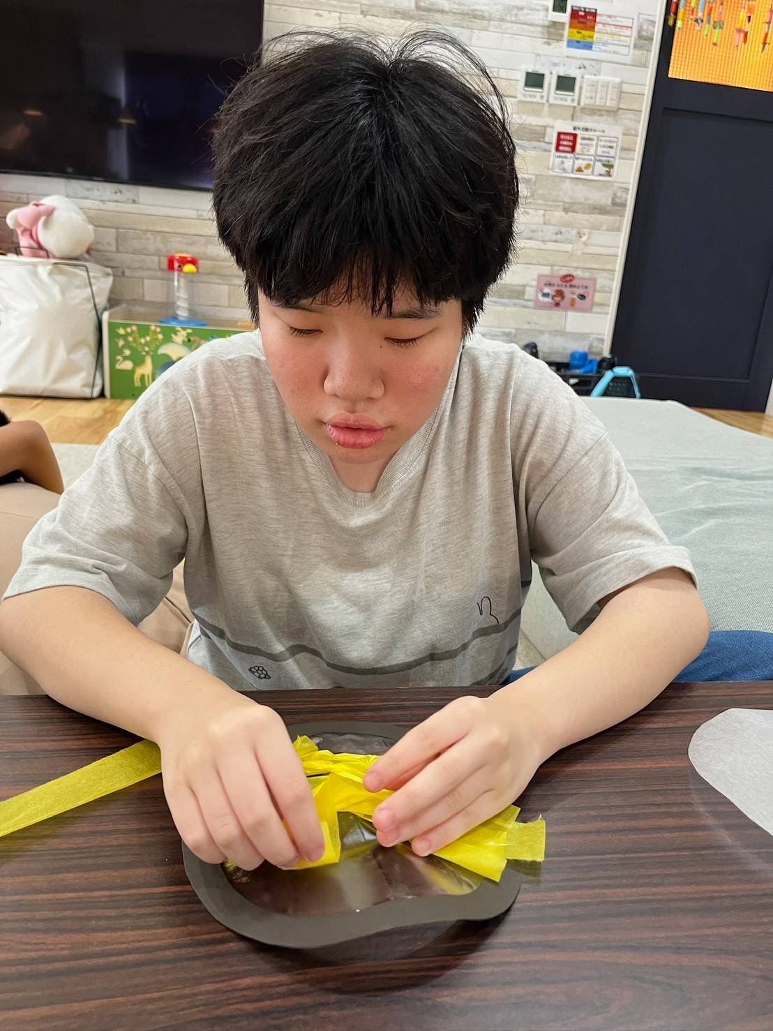 黄色いお花紙を細くちぎってくっつける!白いお花紙も入れると雰囲気出るね✨