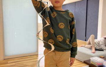 前にも作った事があるくるくるモビール🌀!とっても人気だったのでもう一度作りました😄まずは好きな絵や模様を書きます。 そして線の通りにハサミでチョキチョキ✂️ぐるぐるした曲線なので難しいですが、みんな慎重に進めていきます。…