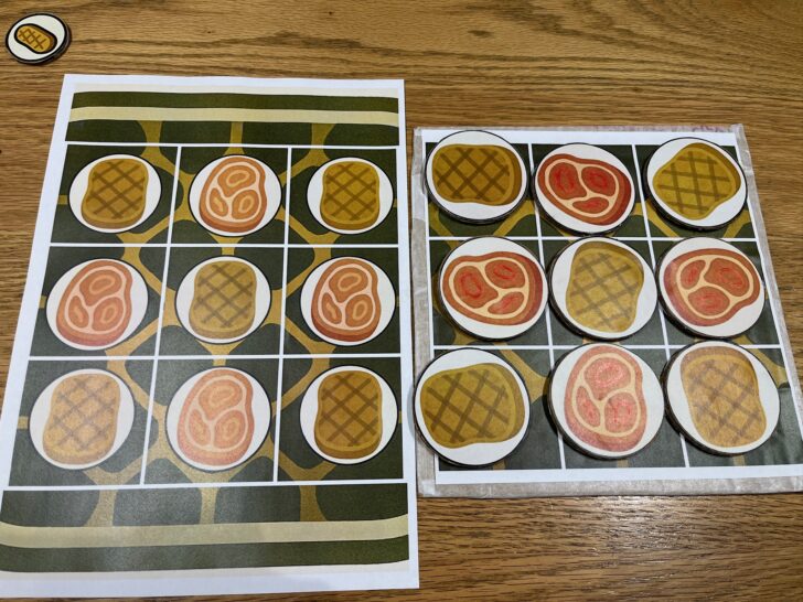 オセロの裏表は白と黒ですが、今回は焼く前の生肉と、こんがりと焼けた後のお肉にしました。