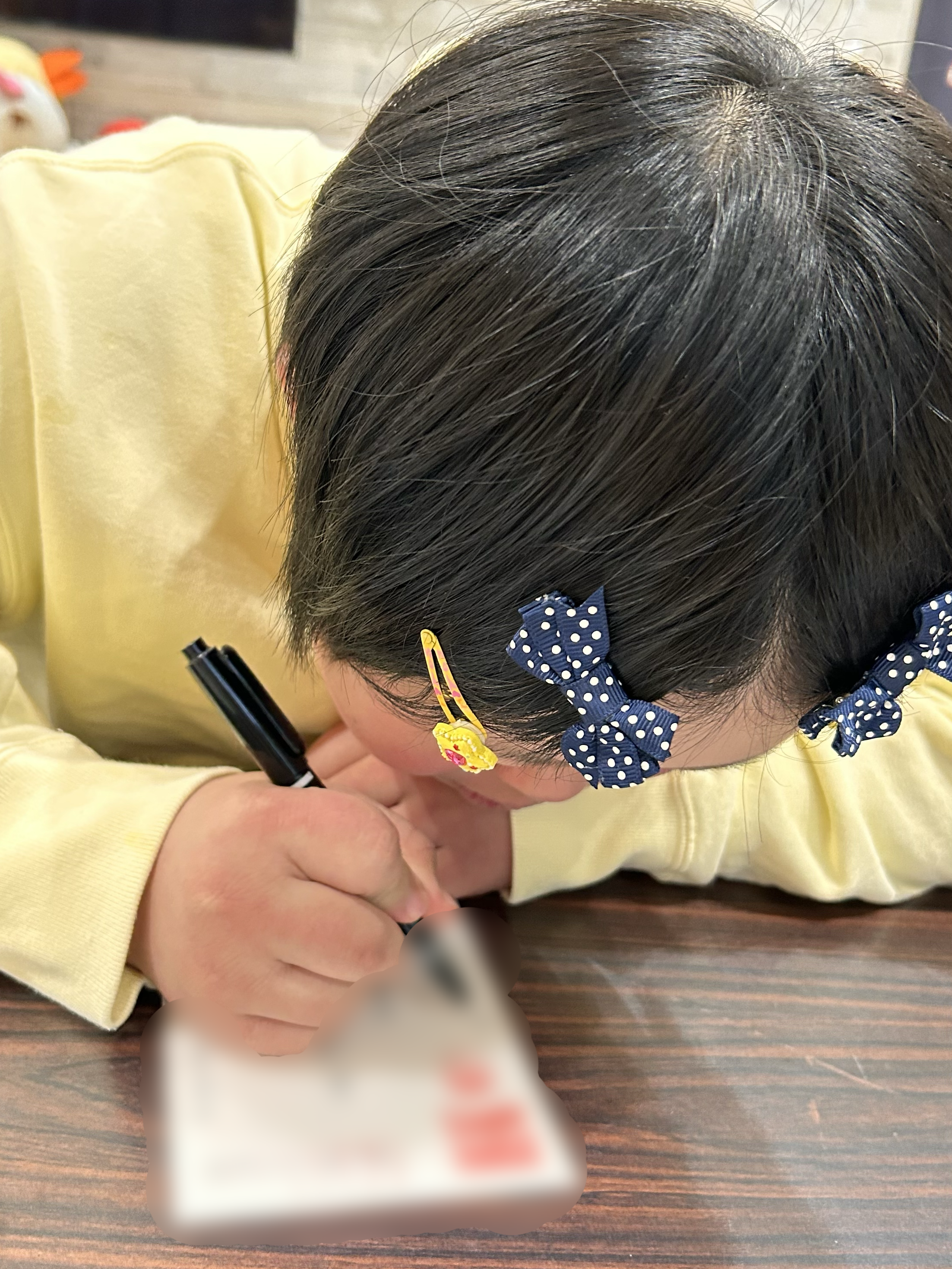 下書きをマジックペンでなぞる子や、見本を見て書く子など、それぞれのペースで進めていきます✏️
