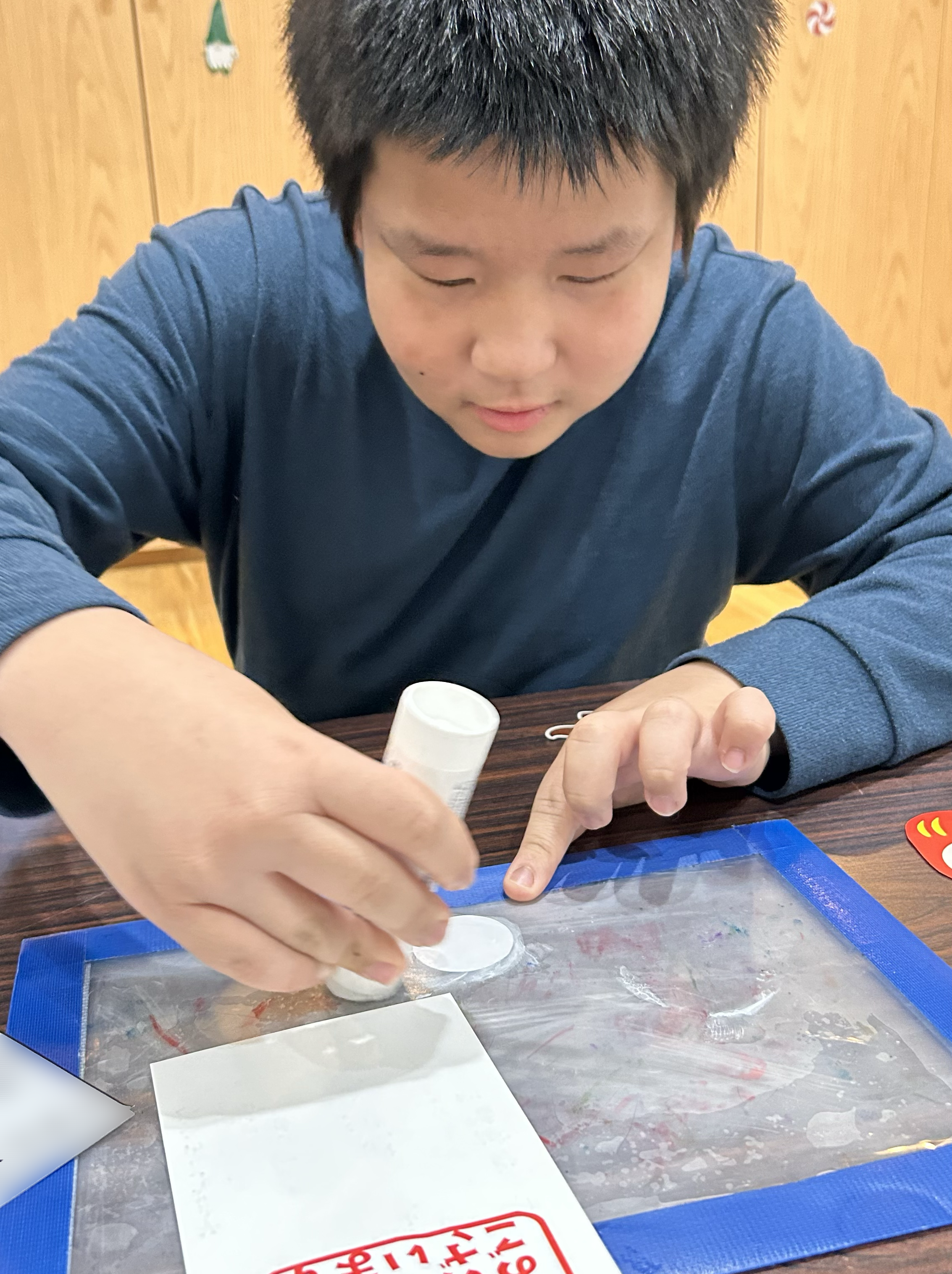 最近は年賀状を出す習慣が少なくなっていますが、今回は日本の文化に触れる機会として、年賀状作りに挑戦しました。まずは名前と住所を書いていきます。