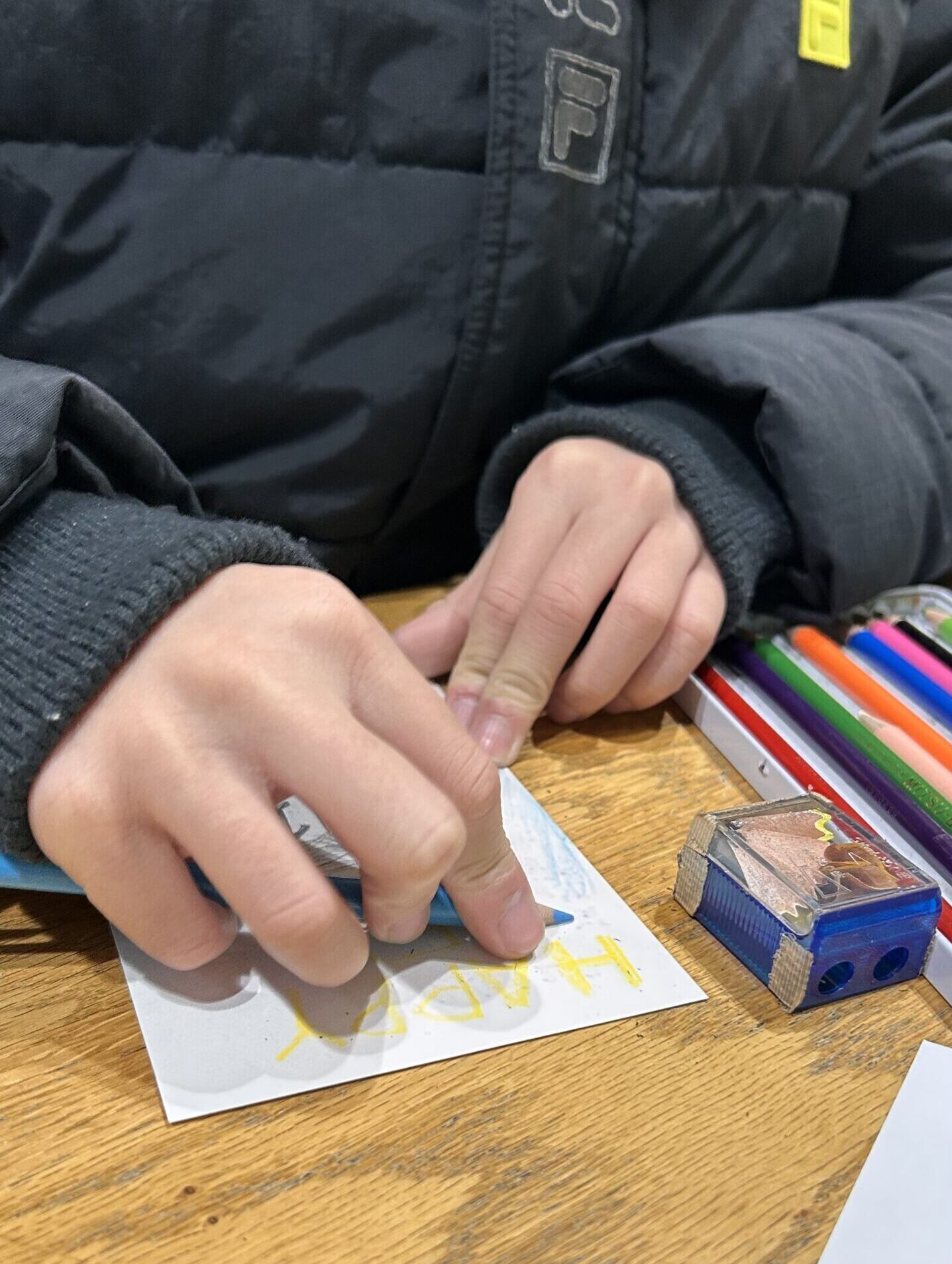 下書きをマジックペンでなぞる子や、見本を見て書く子など、それぞれのペースで進めていきます✏️