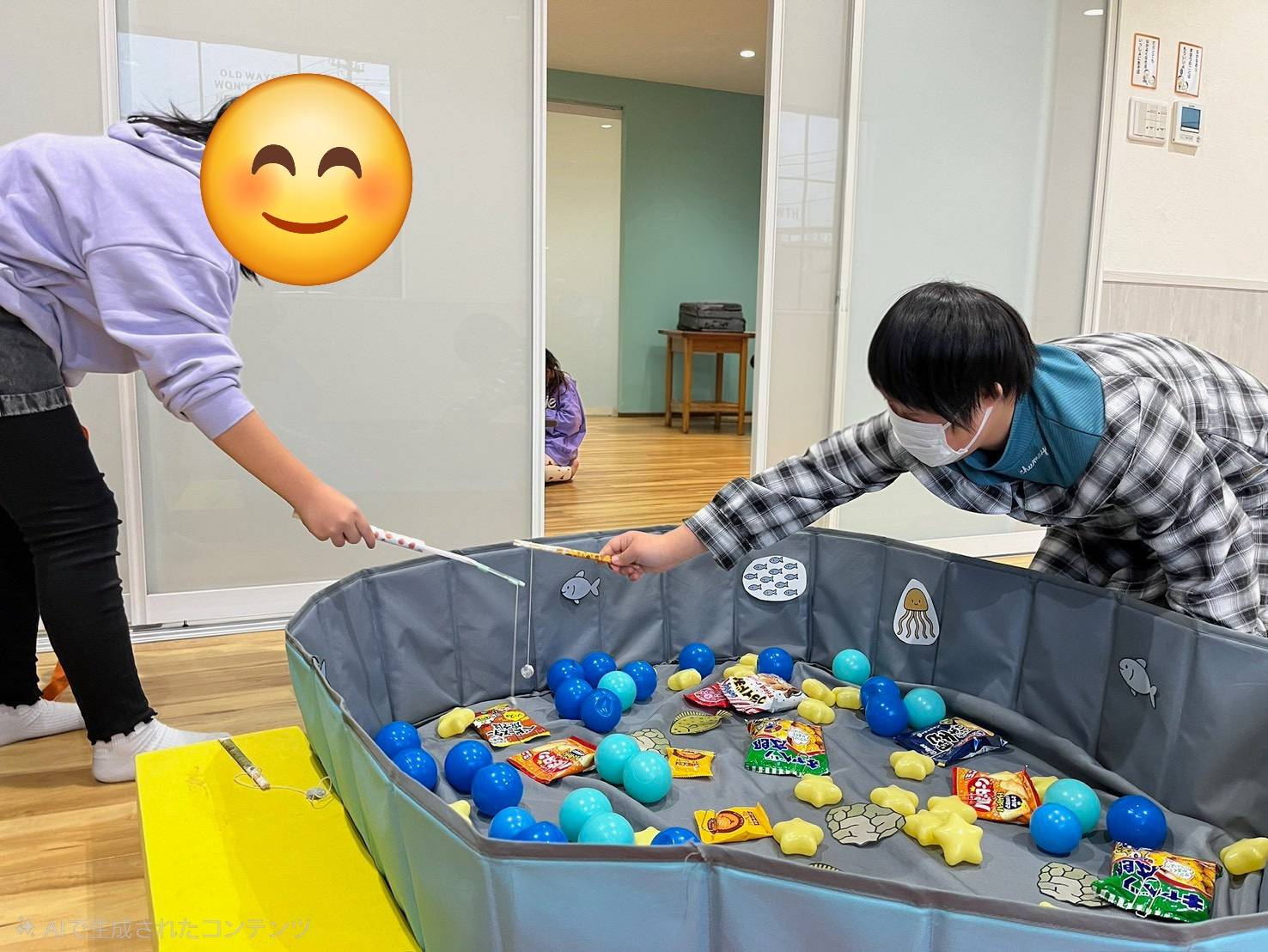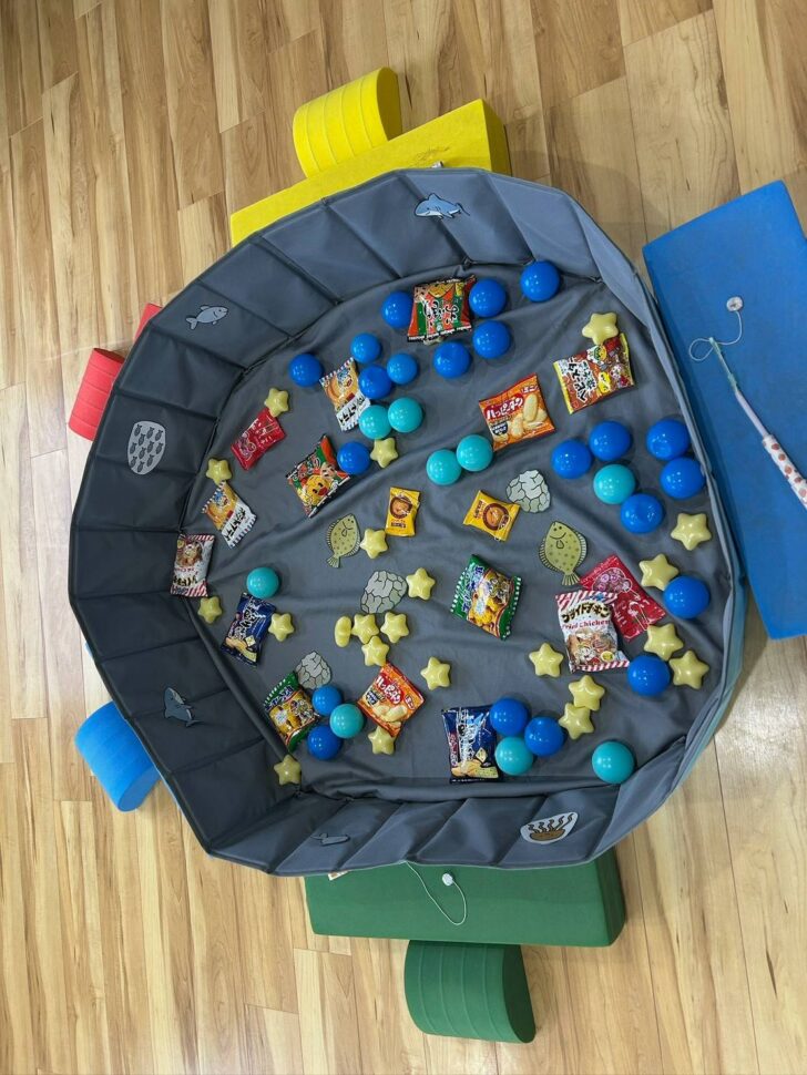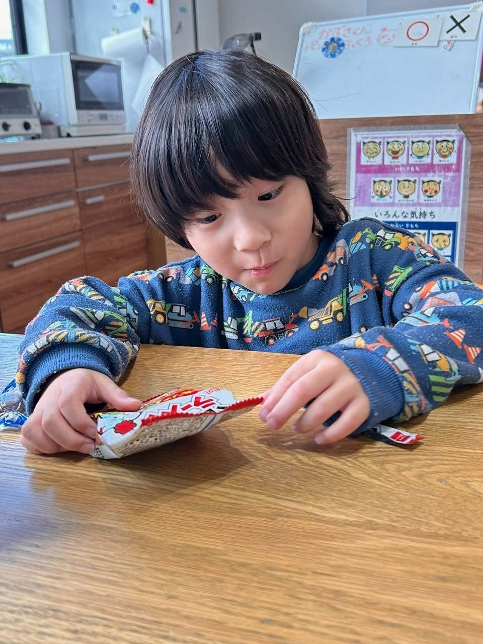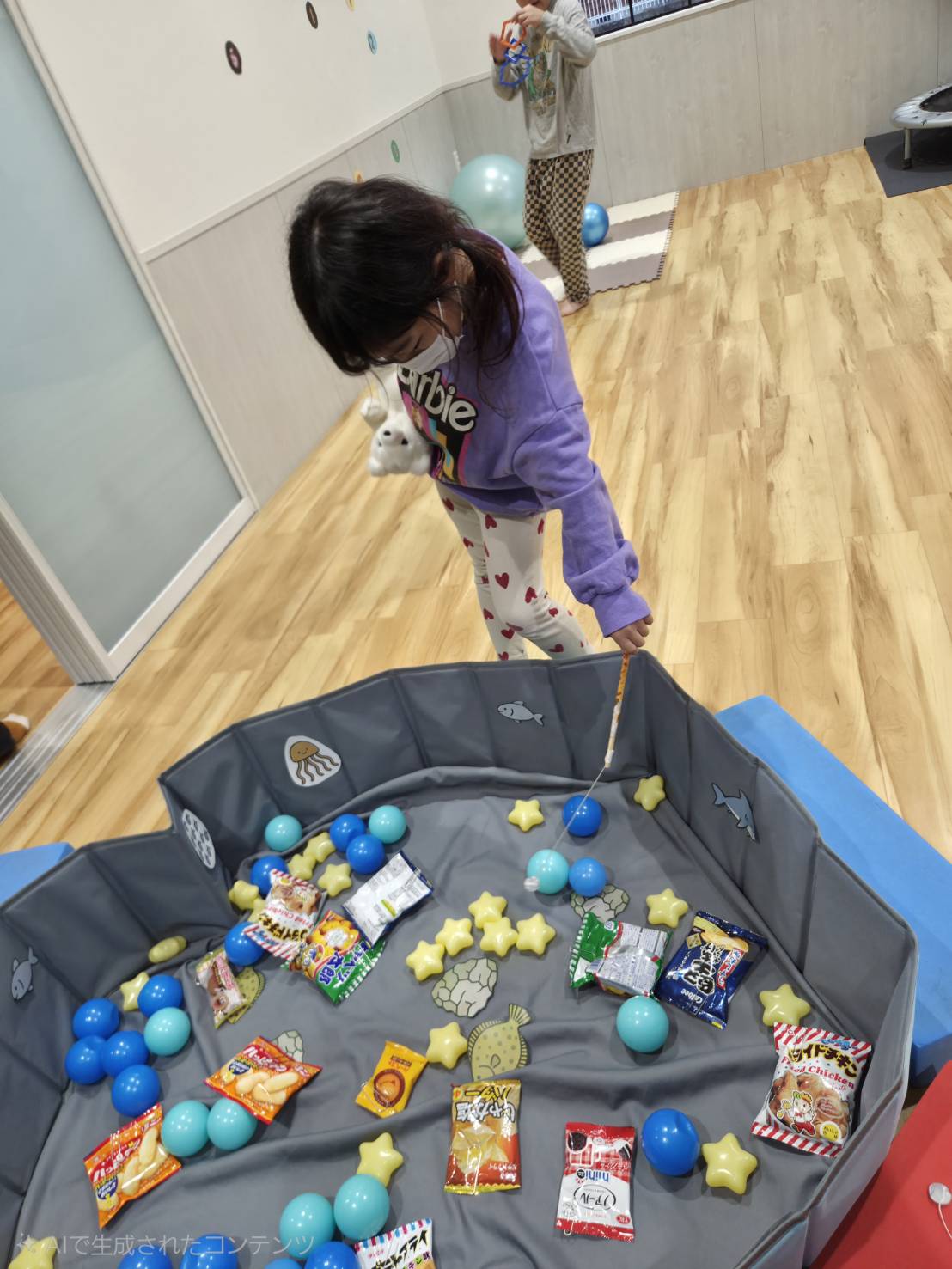 今回のイベントは、いつものおやつタイムをちょっと工夫してみました😊みんなの大好きなおやつを釣竿で釣る!たくさんのおやつの中から、子どもたちは「どれにしようかな?」とワクワクしているよう✨釣竿をもって好きなおやつをゲットしていました😊おやつの時間を楽しんでいる子ども達を、紹介します!