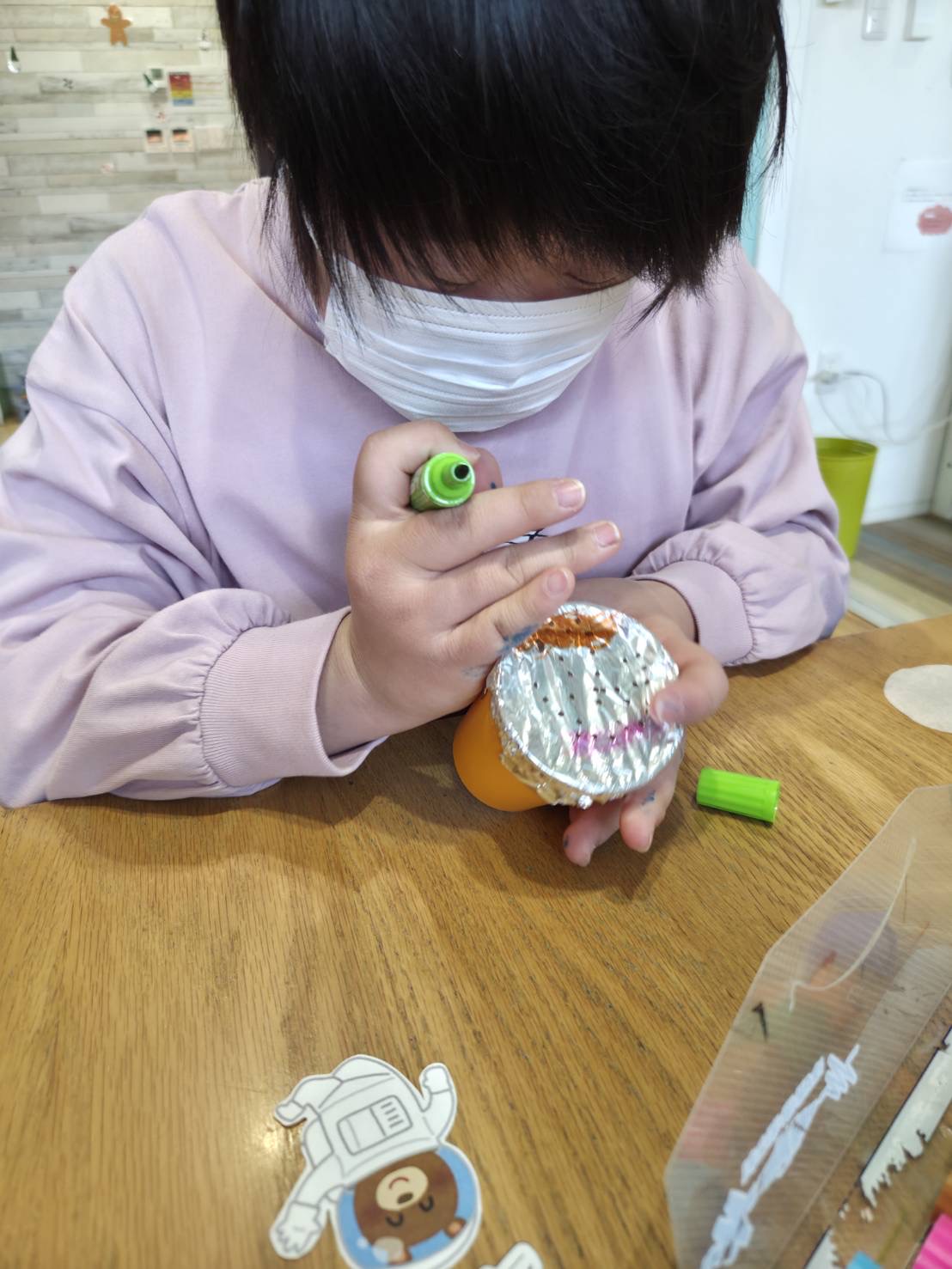 好きな色のマジックで色をぬっていくよ😊