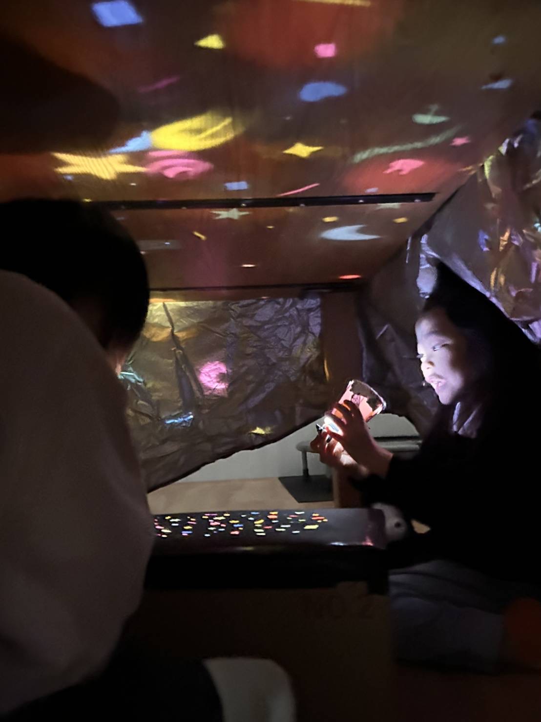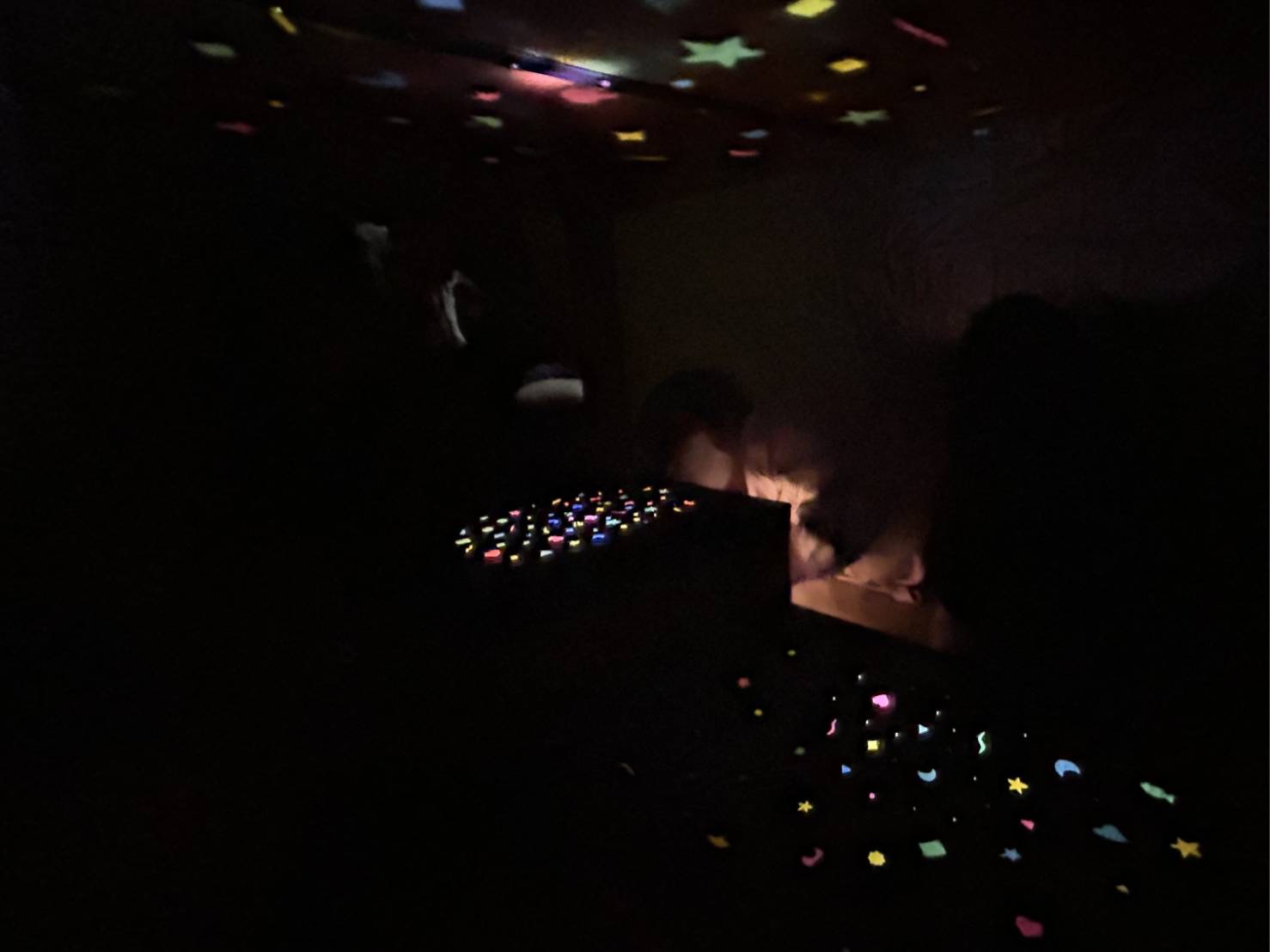 今回のイベントは、ココハウスのプレイルームをプラネタリウムに変身!今日のイベントは何!?と気になって仕方のない子どもたち。自分で紙コップの小さなプラネタリウムを作るよ〜の声をかけに「やるー!!」と職員や友だちと「いい感じ✨」と言いながら、工作に取り組んでいました😊また、真っ暗なプレイルームにドキドキ💓懐中電灯で灯してみると…「わー✨」と、目を光らせクッションに寝転がりながら見上げていました!