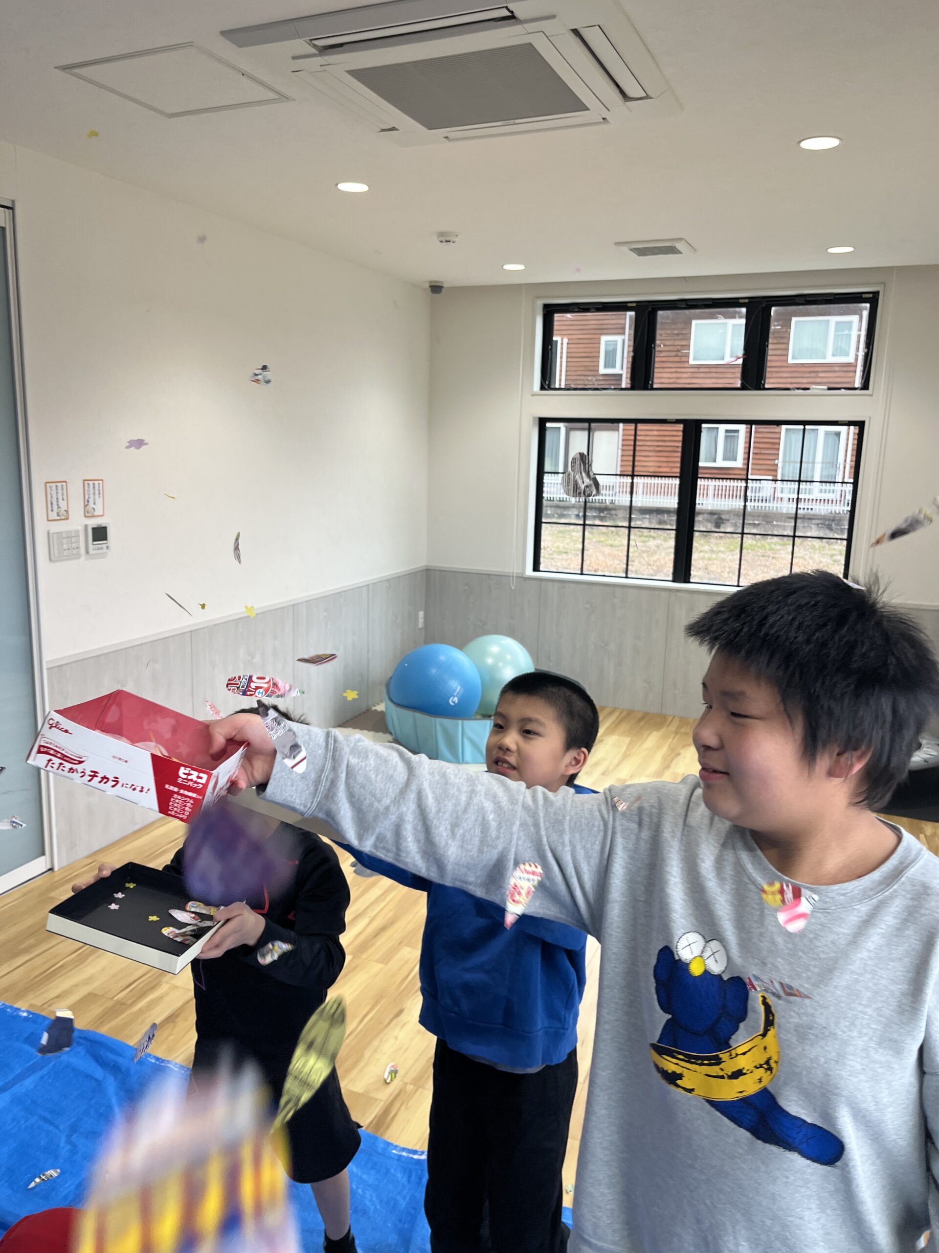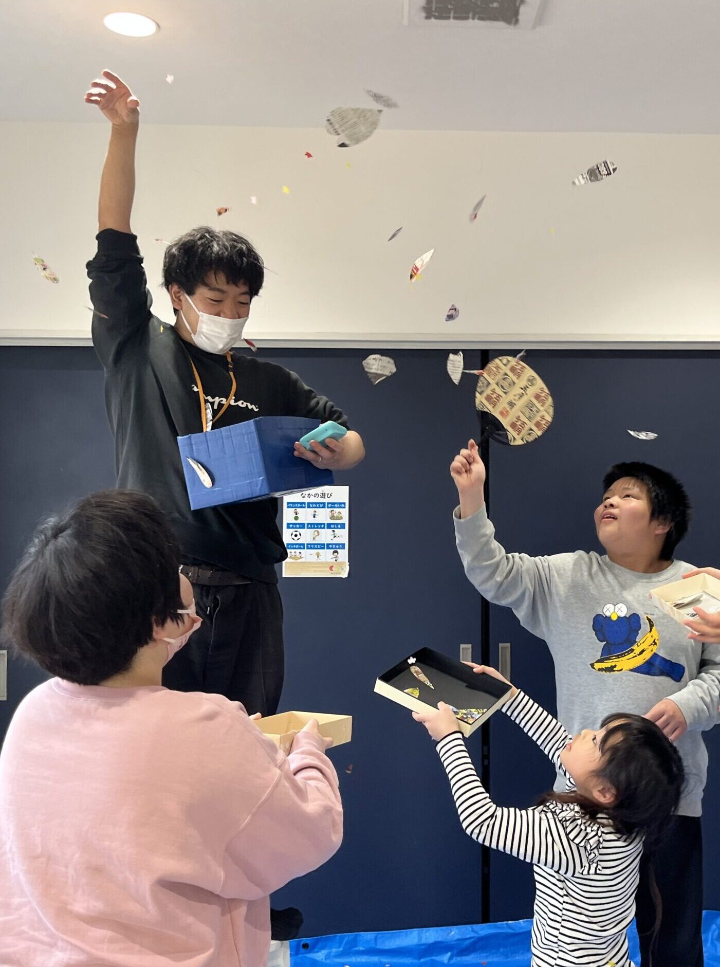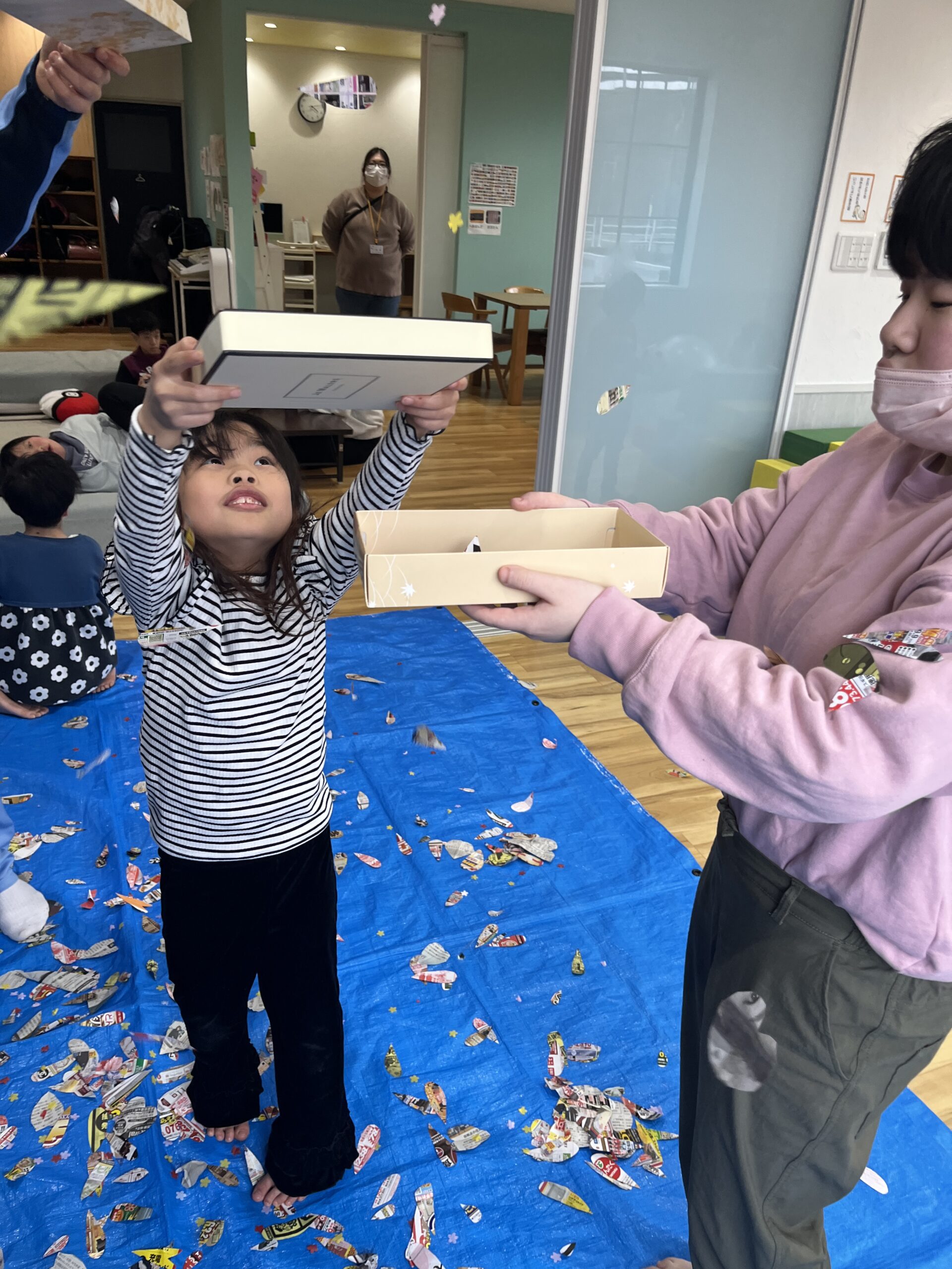 今日は、花びらに見立てた新聞紙やちらしを使い、ゲームをしてみました😊