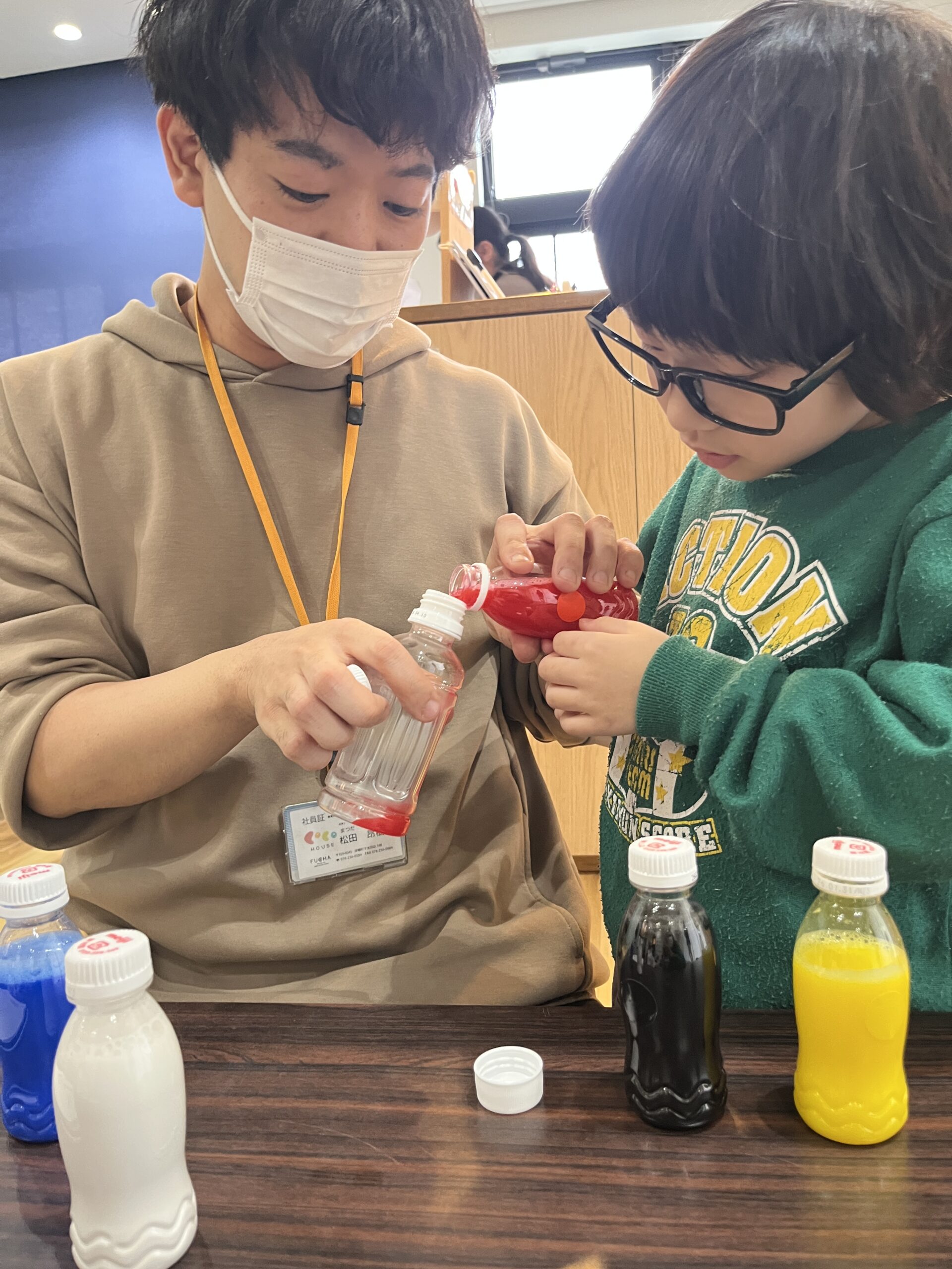 そして実際に色水を混ぜて、答え合わせです‼︎