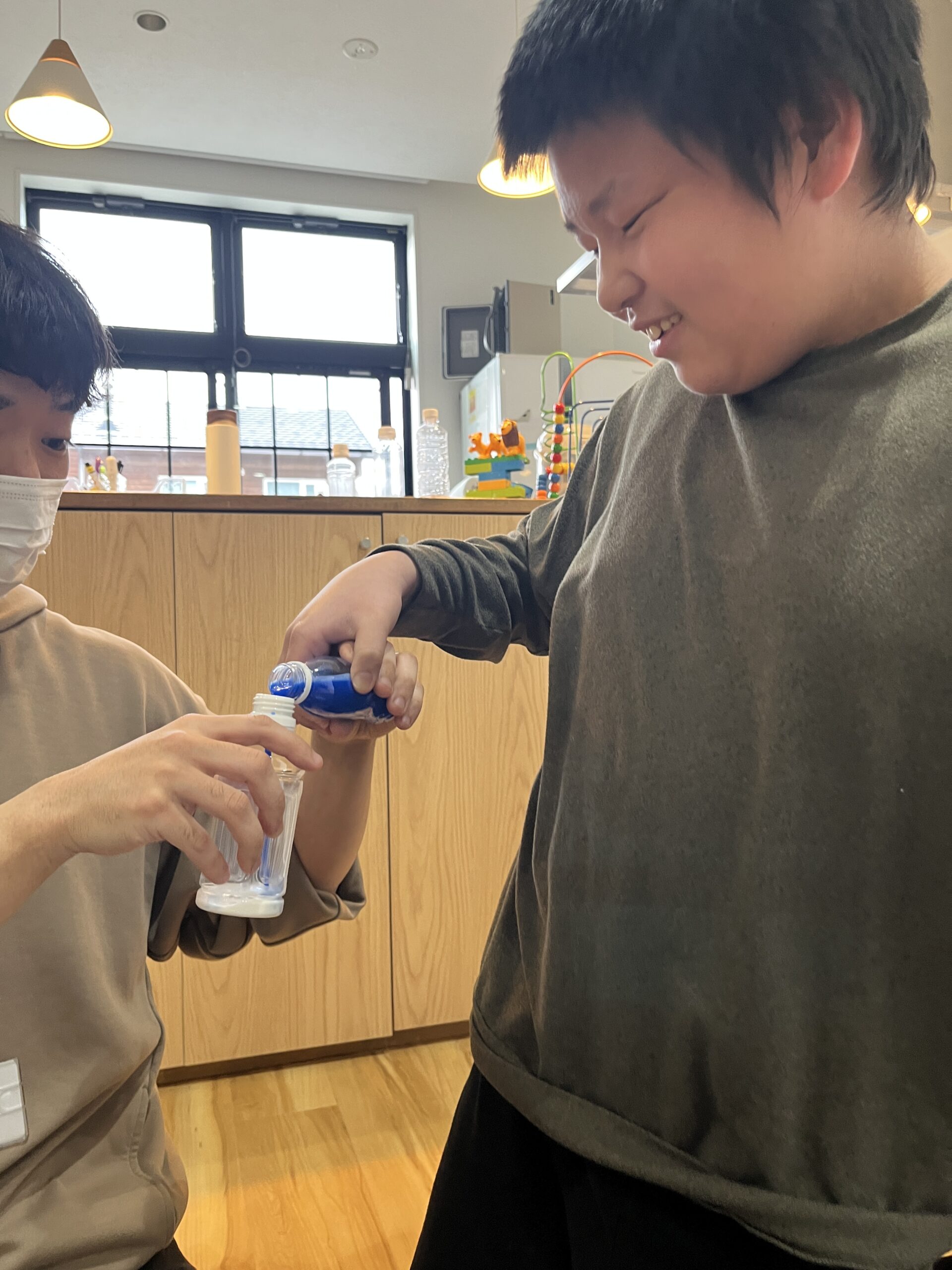 2色をペットボトルに入れ、シェイク❗️