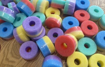 カラフルなドーナツがたくさん😁この中から同じ模様のドーナツを探し出そう! よーし!みんなで頑張るぞ✊「あった!」「こっちも!」と思ったけど、少し違う〜😅片面だけ同じ色があったりするので、両面の色をしっかり確認しています‼…